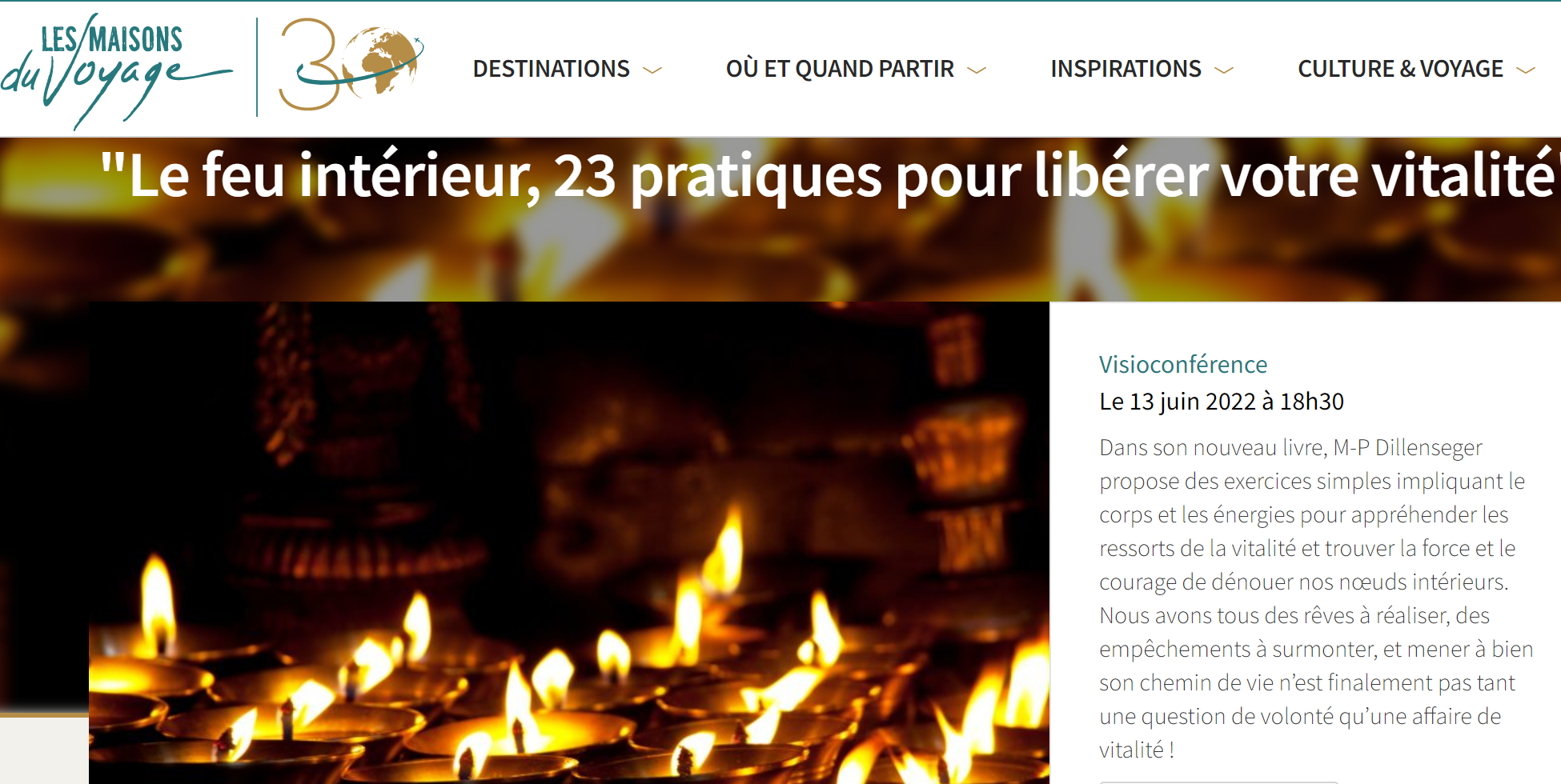 13jun6:30 pm12:00 amLe Feu intérieur, Pratiques de VitalitéLes Maisons du Voyage - Visioconférence